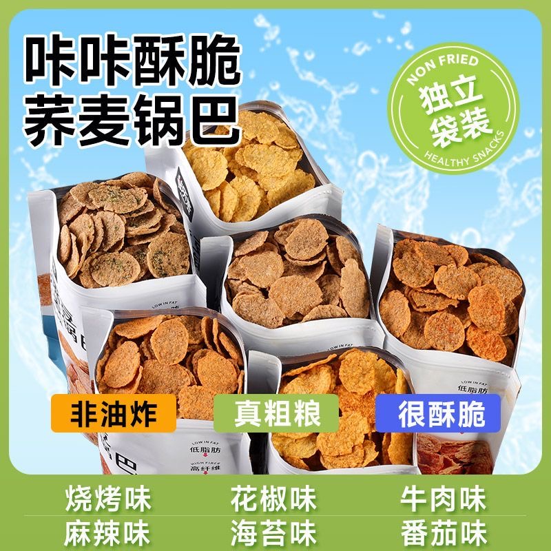 荞麦锅巴非油炸减肥解馋小零食减脂休闲苦荞0卡专用低热量无糖女士低卡海苔主食麻辣味粗粮饱腹方便营养荞麦脆办公室网红款儿童