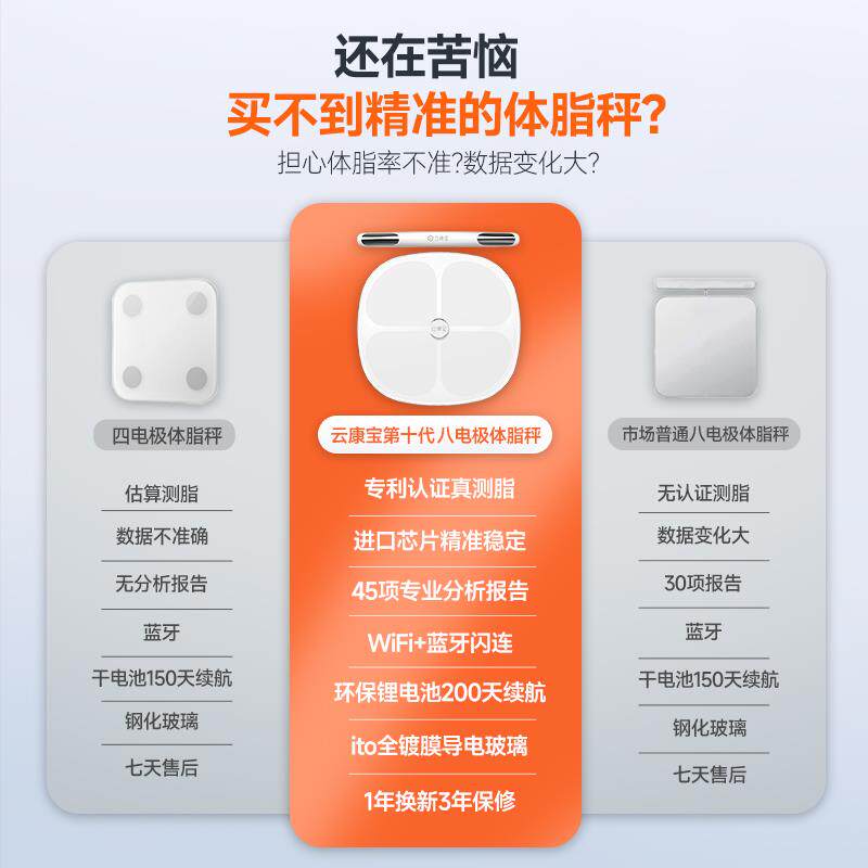 您的位置: 云康宝体脂秤磅八电极减肥专用专业精准电子称体重秤健身房体测仪