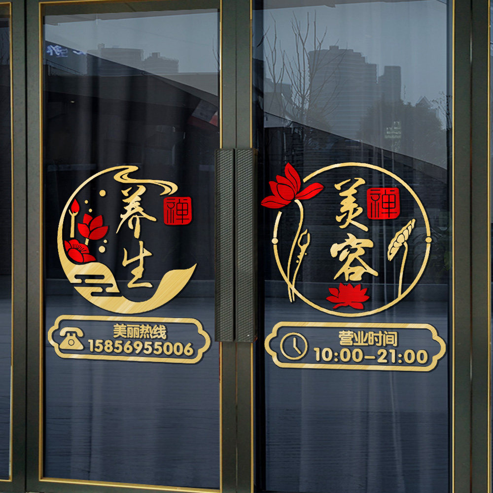 淘宝天猫美容院养生馆玻璃门贴纸创意文字减肥养身之道中医橱窗装饰门贴画优惠券折扣价格–彩云间
