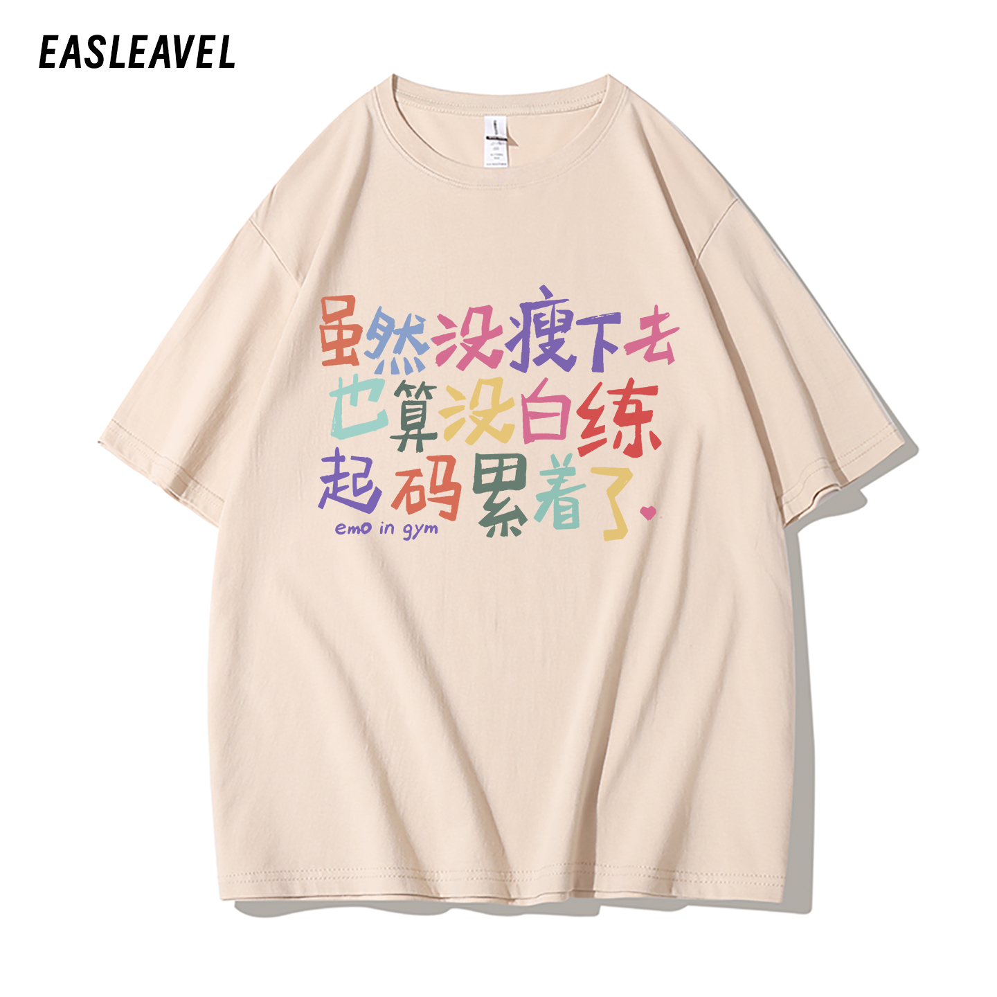 您的位置: 关于减肥趣味搞笑文字重磅纯棉短袖男女同款T恤宽松休闲百搭半袖