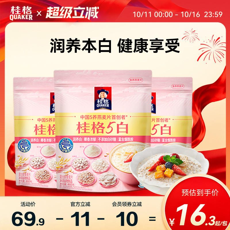 淘宝天猫桂格5白混合五白冲饮麦片460克*2白芸豆饱腹速食即食懒人早餐健身优惠券折扣价格–彩云间