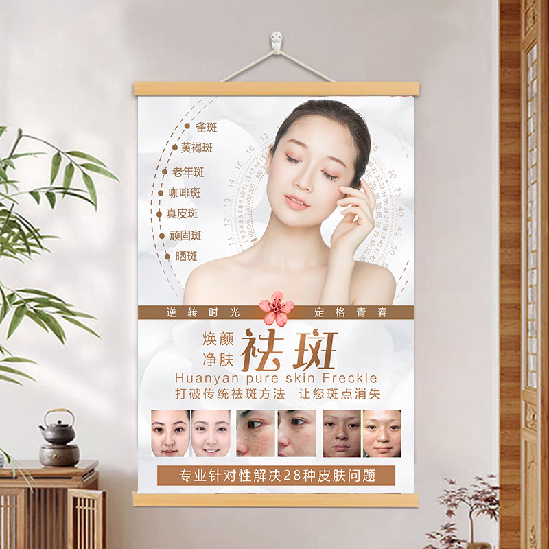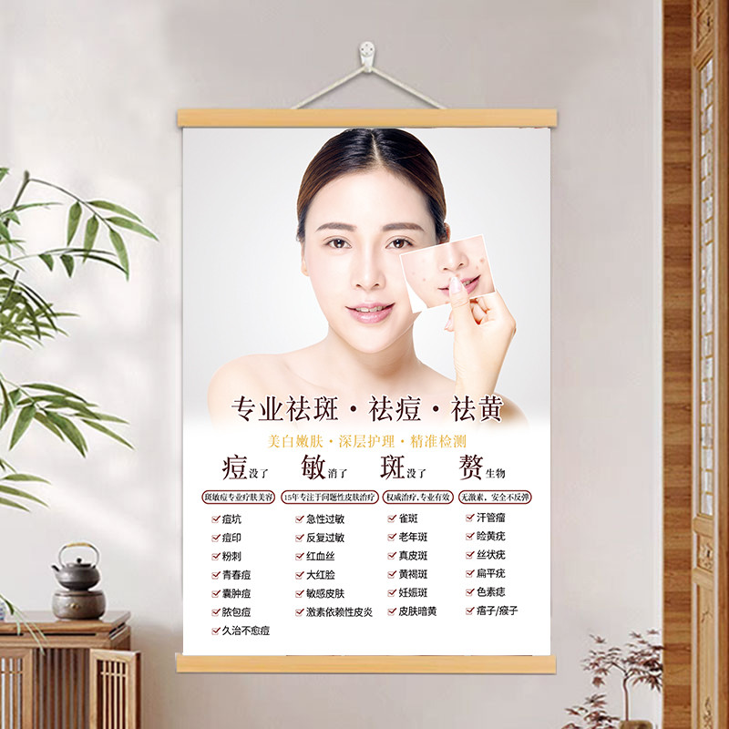 您的位置: 美容院皮肤管理挂画养生馆背景墙壁装饰画祛斑祛痘减肥护肤挂轴图