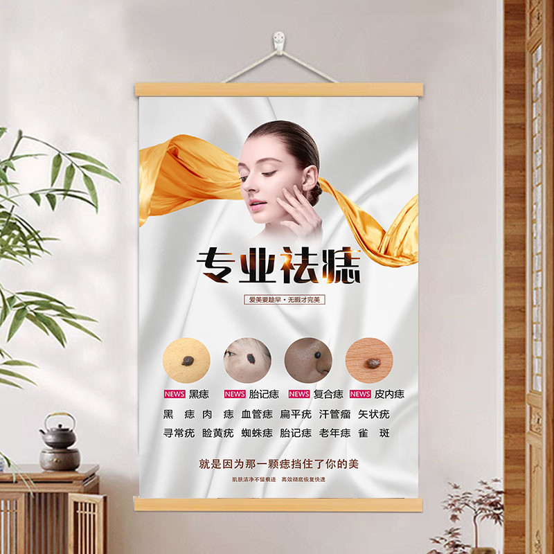 美容院皮肤管理挂画养生馆背景墙壁装饰画祛斑祛痘减肥护肤挂轴图