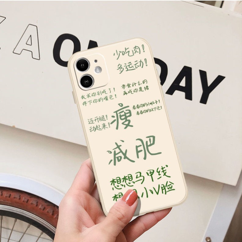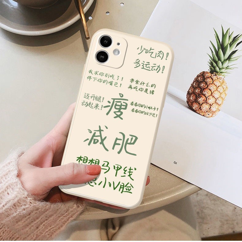 减肥手机壳励志文字12手机壳11减肥8p全包6s防摔xs液态硅胶包邮