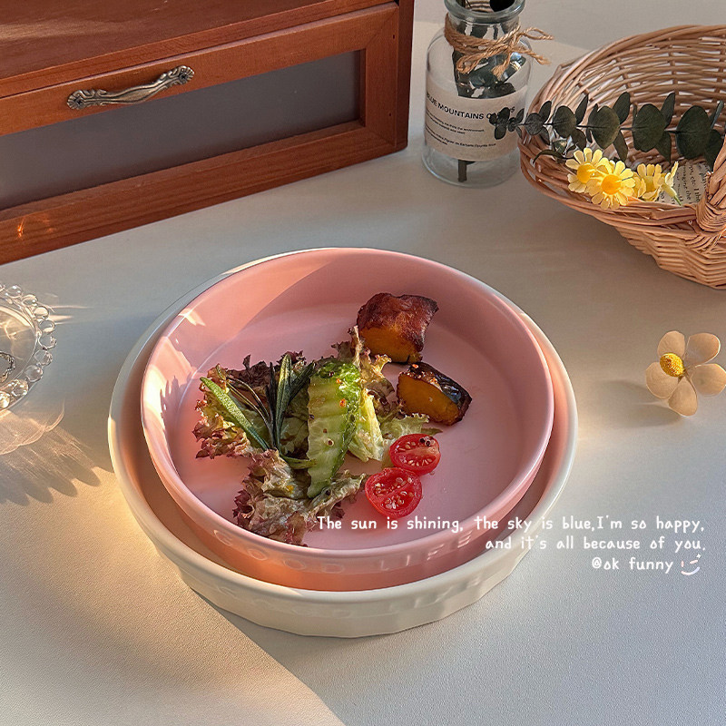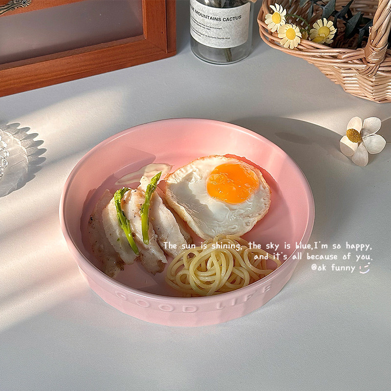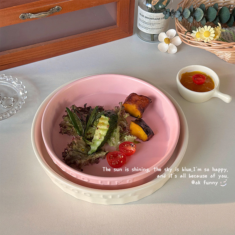 可爱少女心陶瓷盘子家用菜盘漂亮餐盘牛排意面盘蒸盘圆盘减肥餐盘