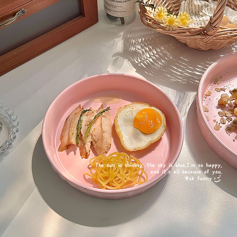 您的位置: 可爱少女心陶瓷盘子家用菜盘漂亮餐盘牛排意面盘蒸盘圆盘减肥餐盘