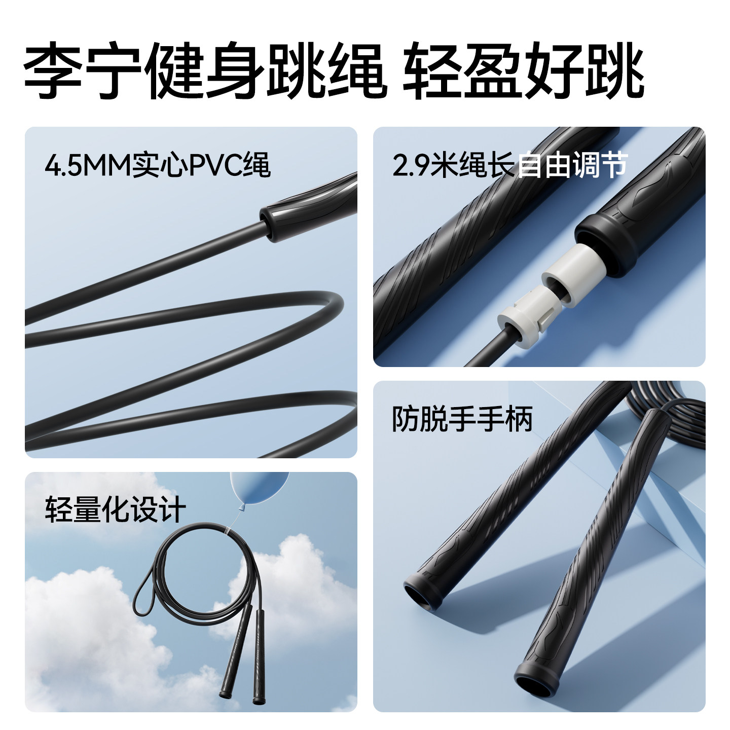 李宁跳绳健身减肥运动儿童竞速小学生中考专用成人女燃脂专业绳子