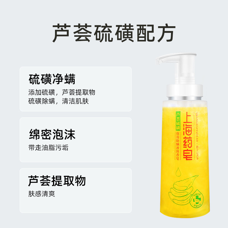 上海药皂液体硫磺320g*3瓶+芦荟320g*2瓶家庭男女通用组合沐浴