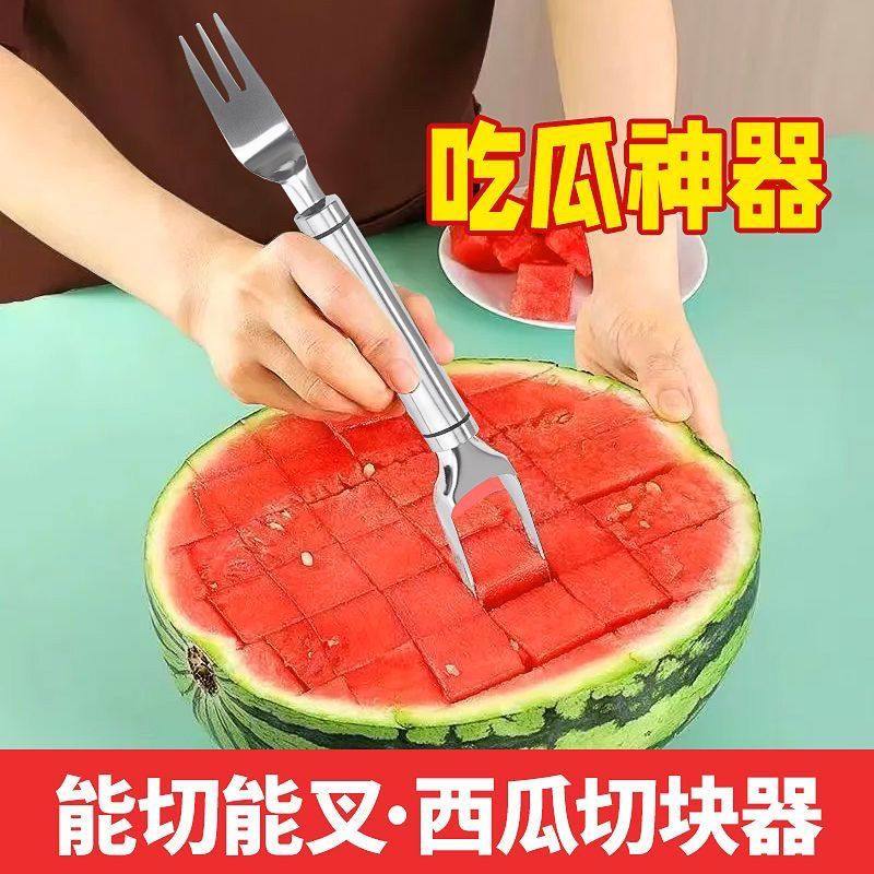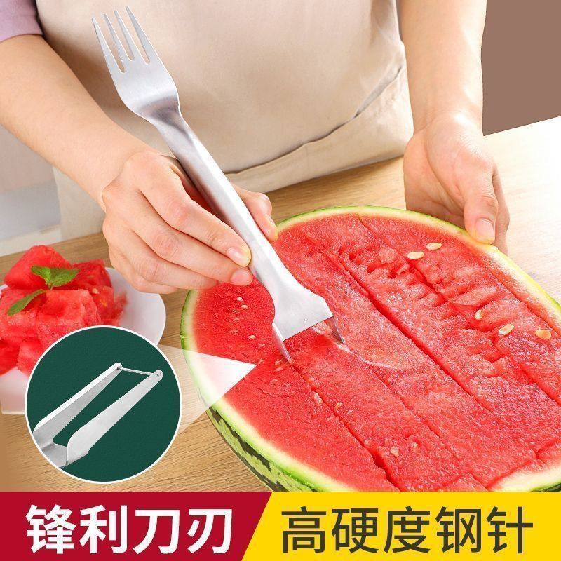 西瓜切块神器双头不锈钢网红分割器家用吃瓜叉厨房两用西瓜专用切