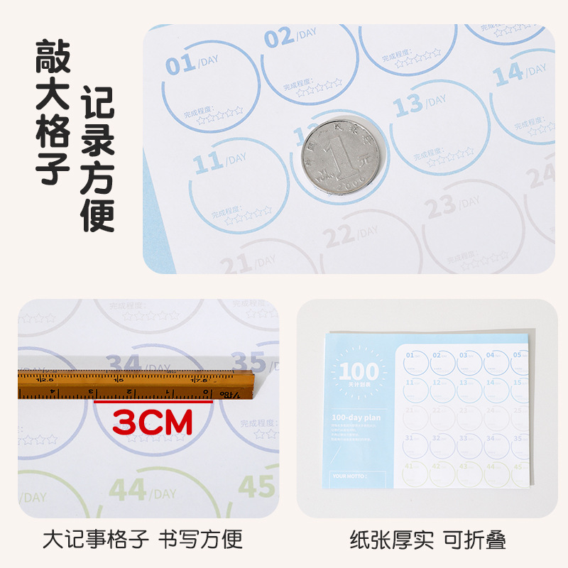 100天计划表墙贴鸭子纯色记录表减肥打卡自律表健身一百天瘦身百日体重打卡神器励志学习考试倒计时考研计划