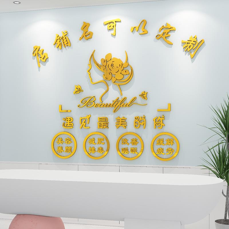您的位置: 美容养生减肥院墙纸3d立体墙贴画自粘定制店名logo前吧台背景装饰