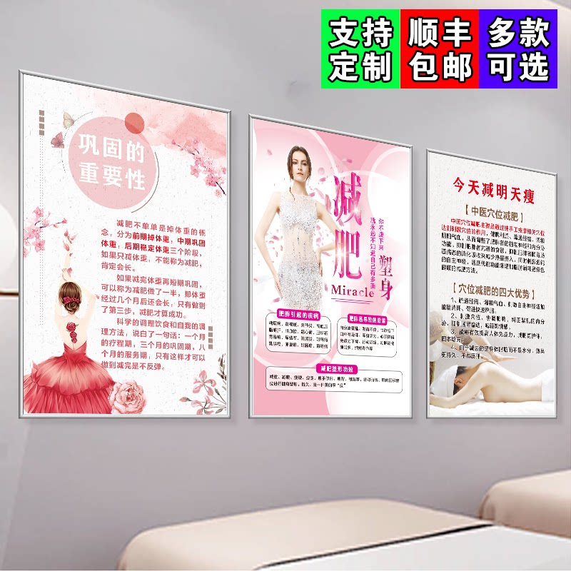 淘宝天猫美容院装饰画减肥塑形墙面挂画瘦身海报健身房养生馆广告海报贴纸优惠券折扣价格–彩云间
