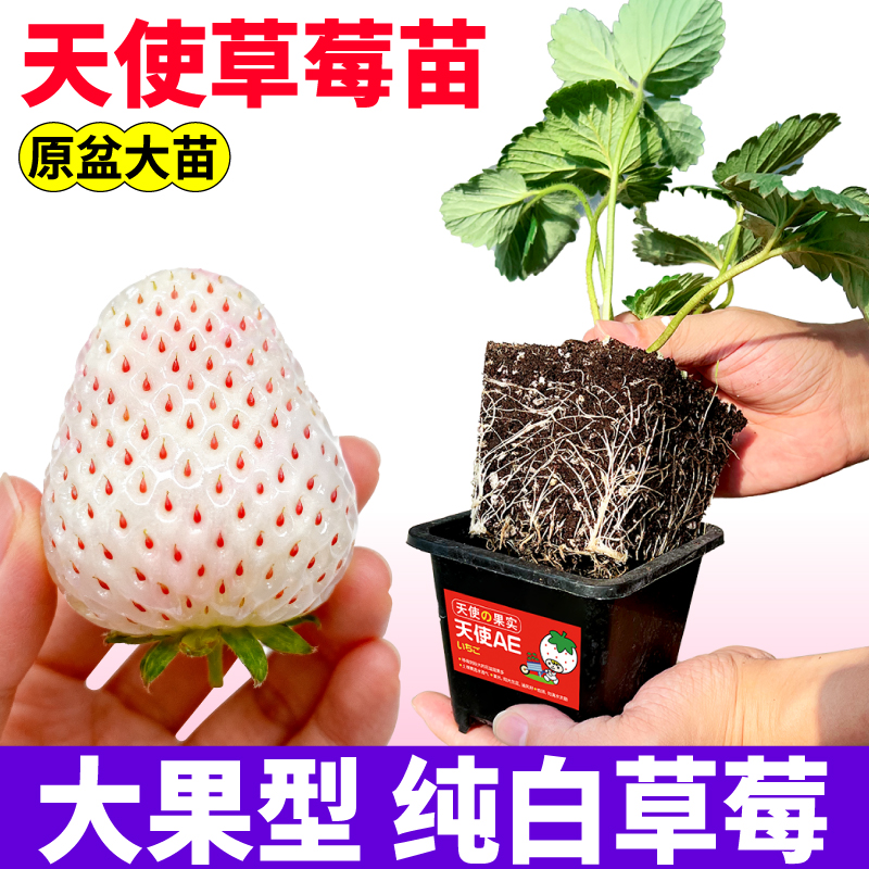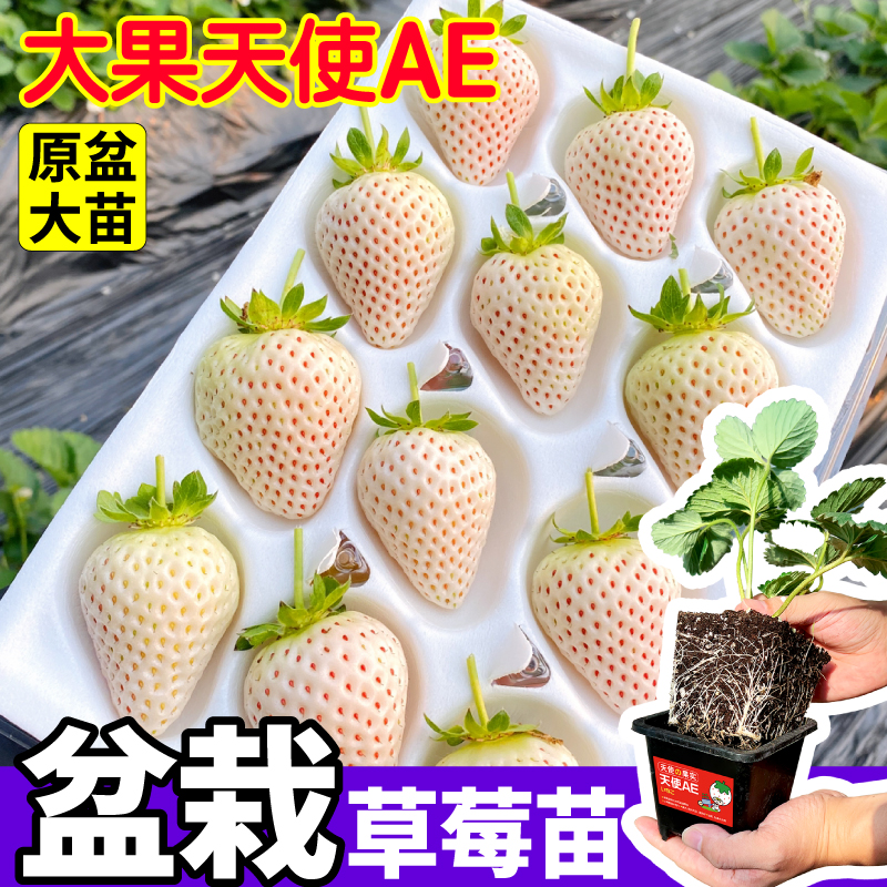 天使AE盆栽草莓苗秧原土原盆大苗白草莓苗秧四季阳台盆栽耐寒高产