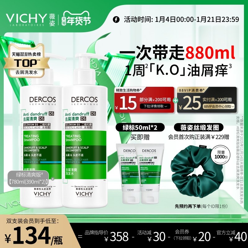 淘宝天猫薇姿绿标洗发水官方正品去屑水润控油蓬松二硫化硒洗头膏露男女士优惠券折扣价格–彩云间