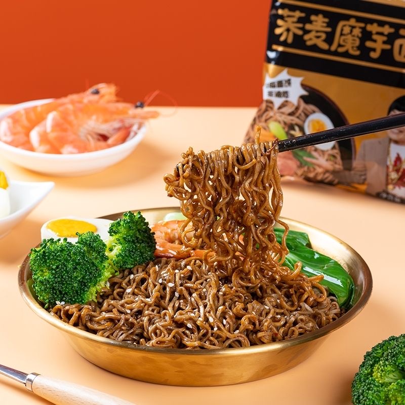 荞麦面无糖0脂肪减肥专用0卡0反式脂肪酸无糖无添加剂非油炸魔芋面葱油黑鸭味面饼方便速食拌面料包粗粮网红女神健身轻食代餐饱腹