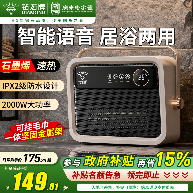 淘宝天猫钻石牌取暖器浴室暖风机浴霸挂壁式办公暖手神器桌面取暖电暖挂墙优惠券折扣价格–彩云间