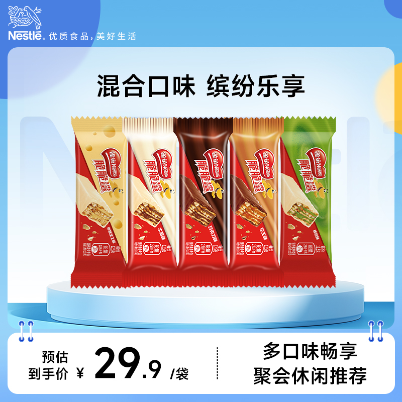 > 【旗舰店】雀巢脆脆鲨威化饼干巧克力牛奶花生味散装混合口味零食