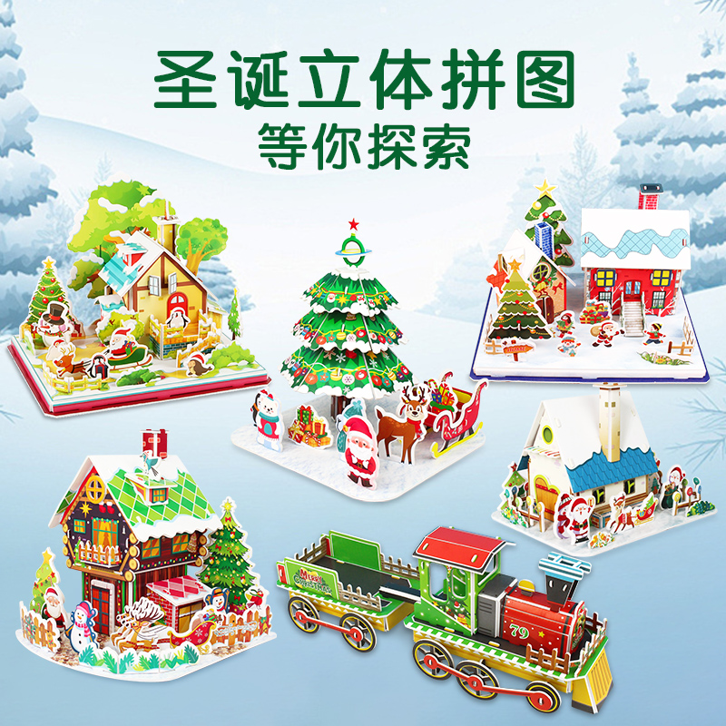 淘宝天猫圣诞节礼物品儿童拼图立体3D小屋房子拼装男女孩手工diy模型玩具优惠券折扣价格–彩云间