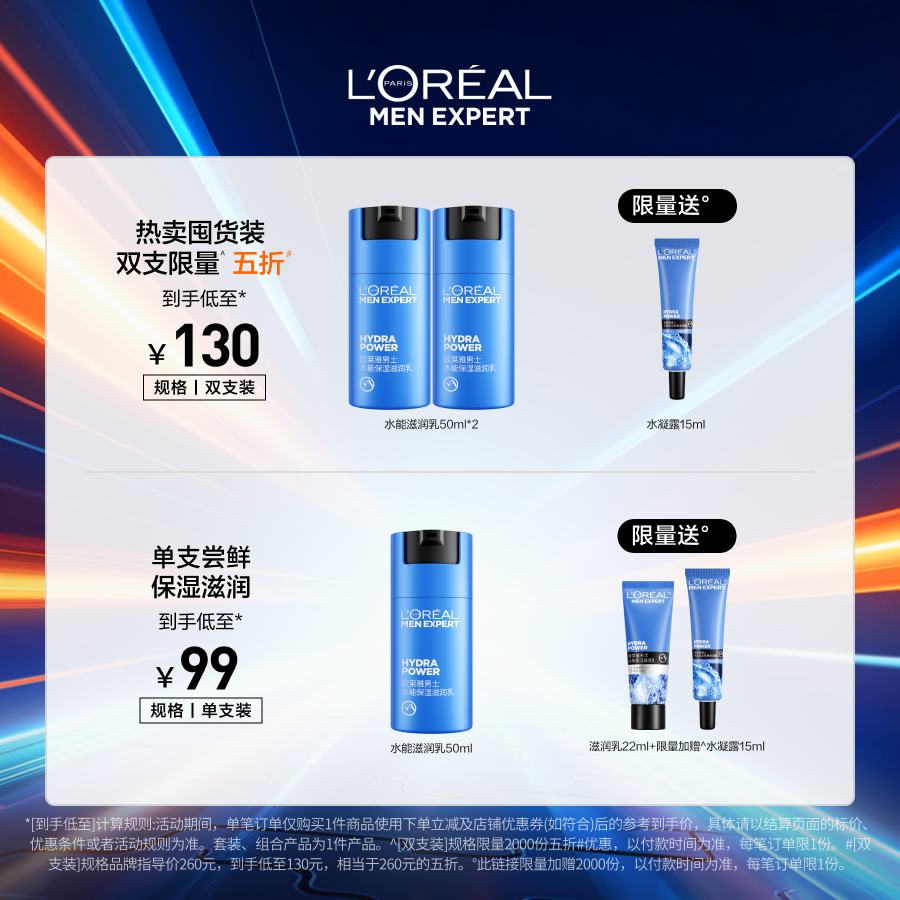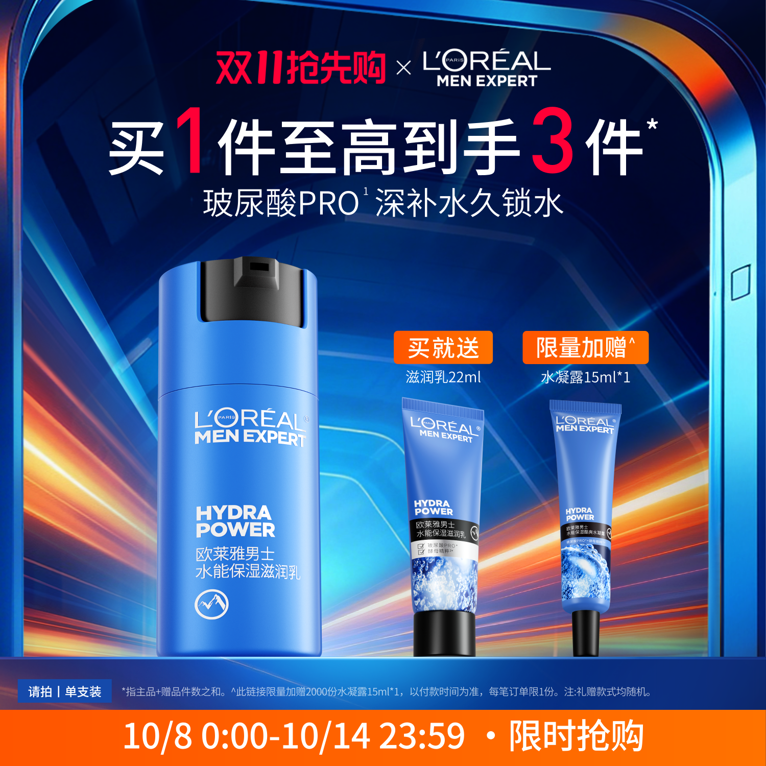 > 【双11抢先购】欧莱雅男士保湿滋润乳面霜补水擦脸部乳液润护肤品