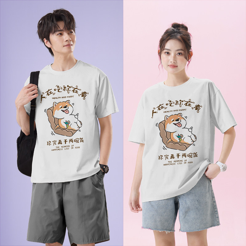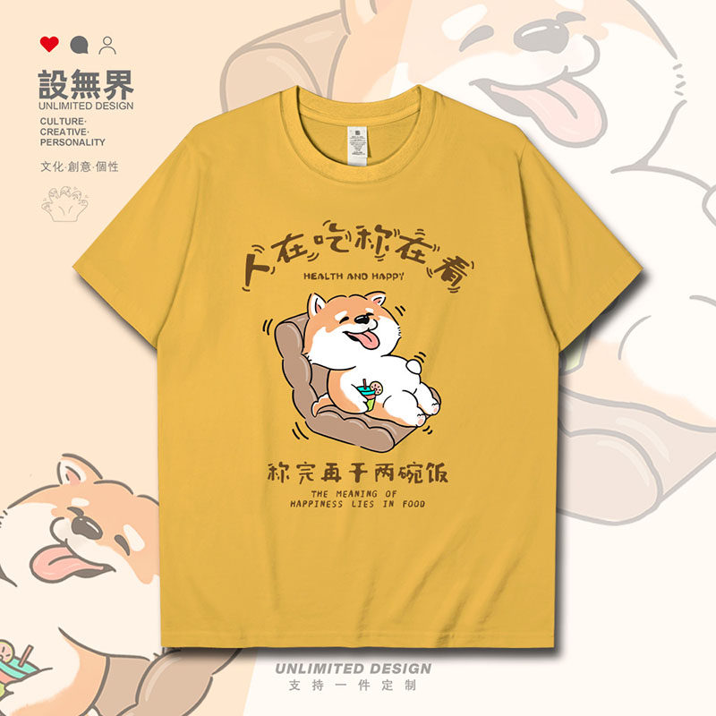 淘宝天猫原创柴犬狗狗减肥人在吃称在看短袖T恤男女潮服装体恤0015设 无界优惠券折扣价格–彩云间
