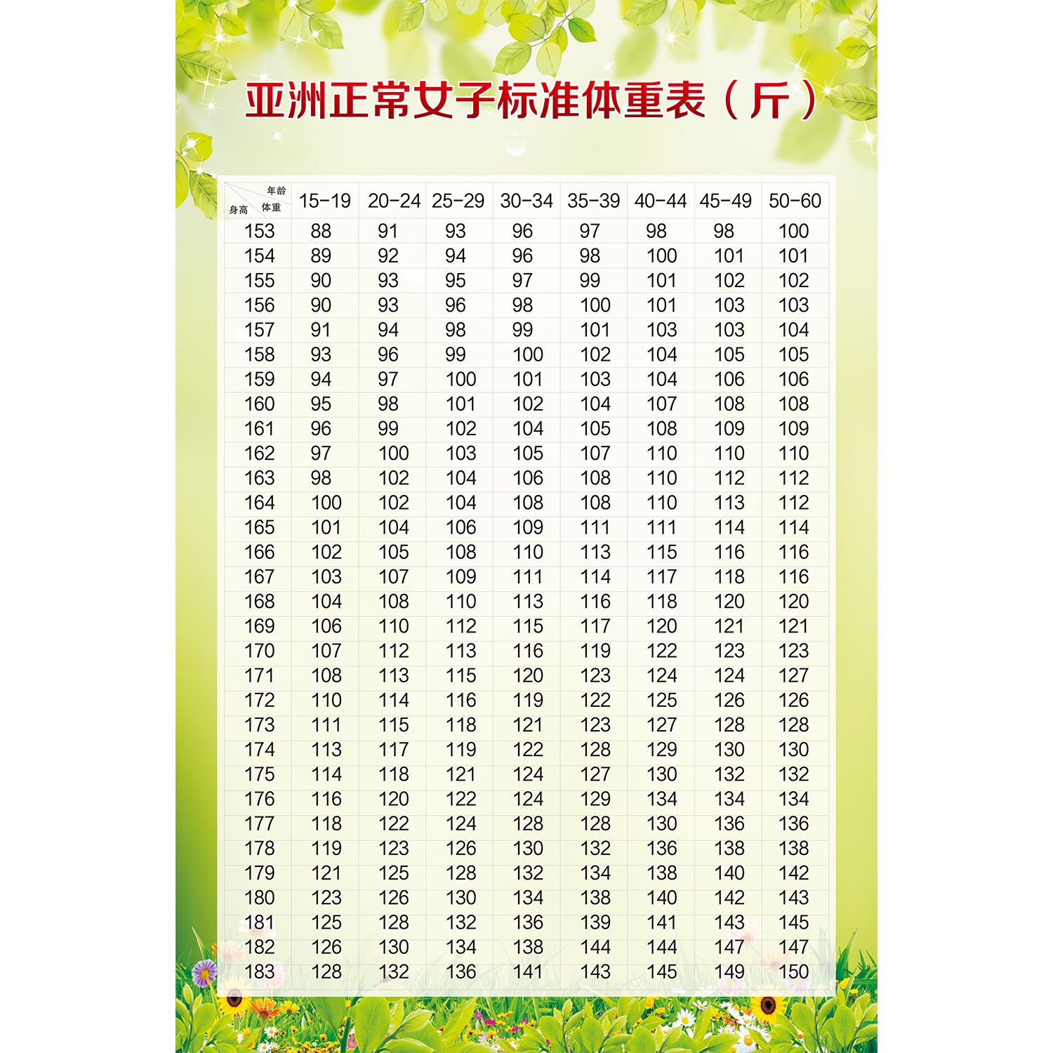 淘宝天猫正常成年男女标准体重身高对照表减肥瑜伽健身房自粘墙贴画海报优惠券折扣价格–彩云间