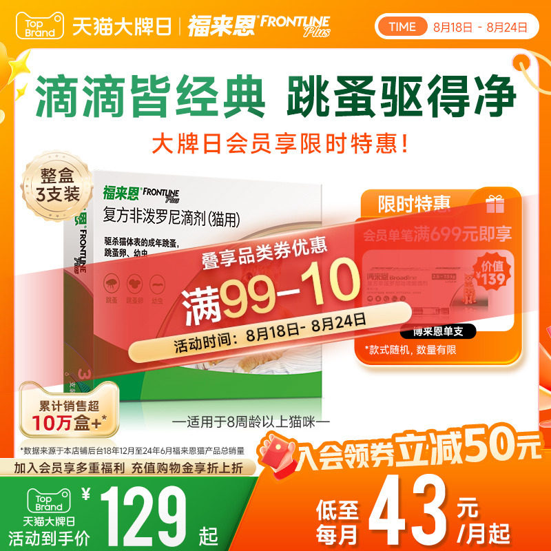 淘宝天猫福来恩体外驱虫复方非泼罗尼滴剂宠物幼猫成猫驱虫药跳蚤幼蚤蚤卵优惠券折扣价格–彩云间