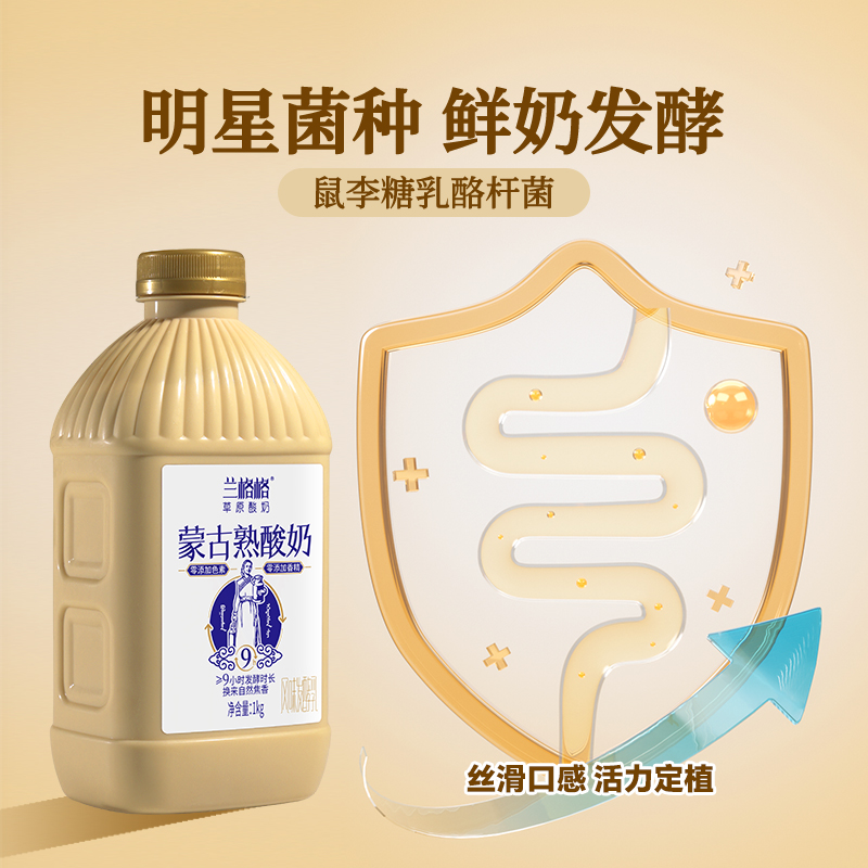 > 兰格格草原酸奶内蒙炭烧熟酸奶乳酪酸奶1kg*4