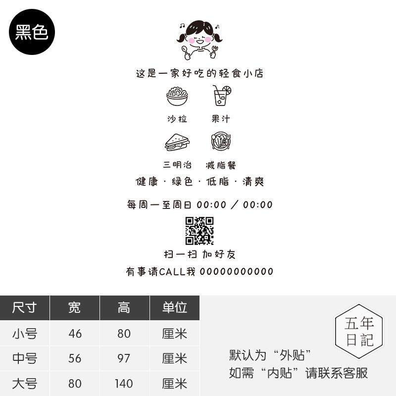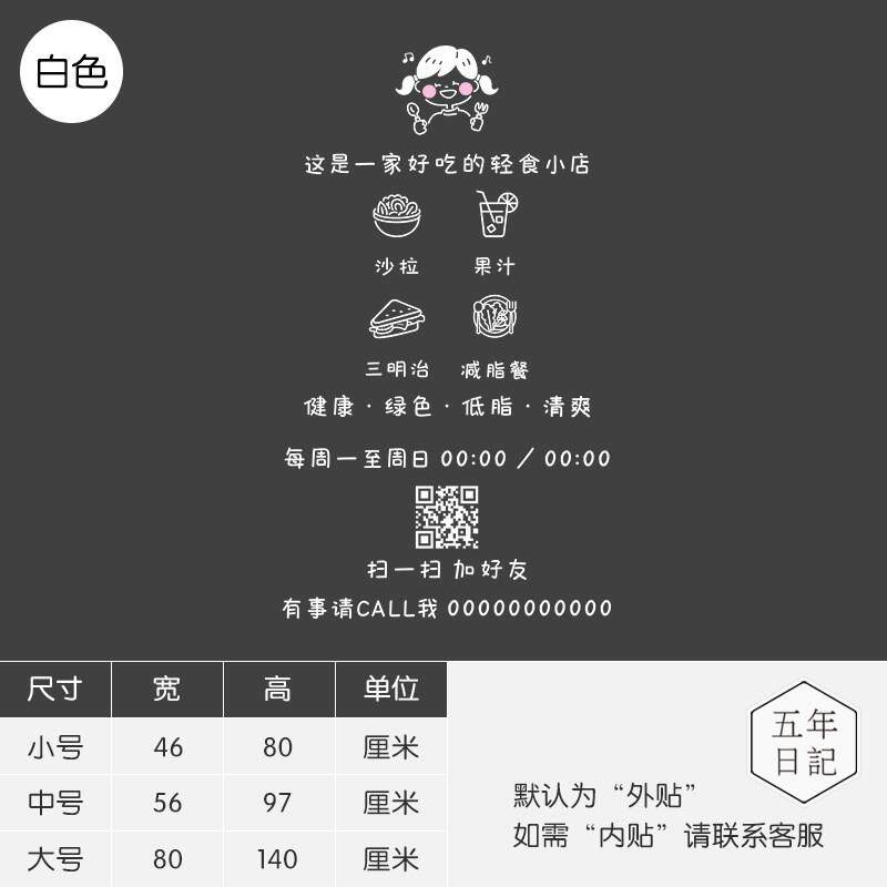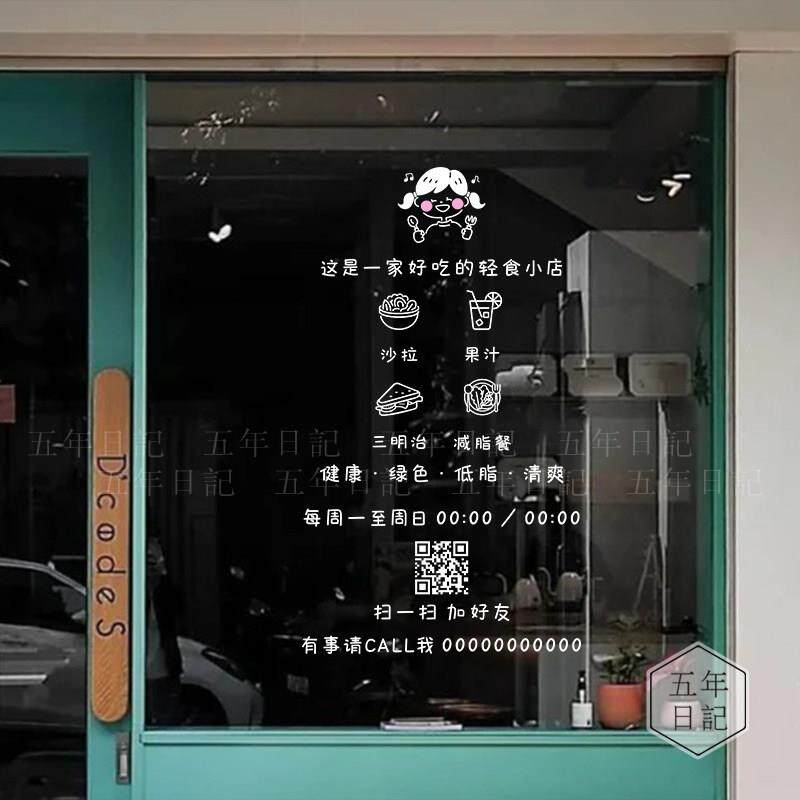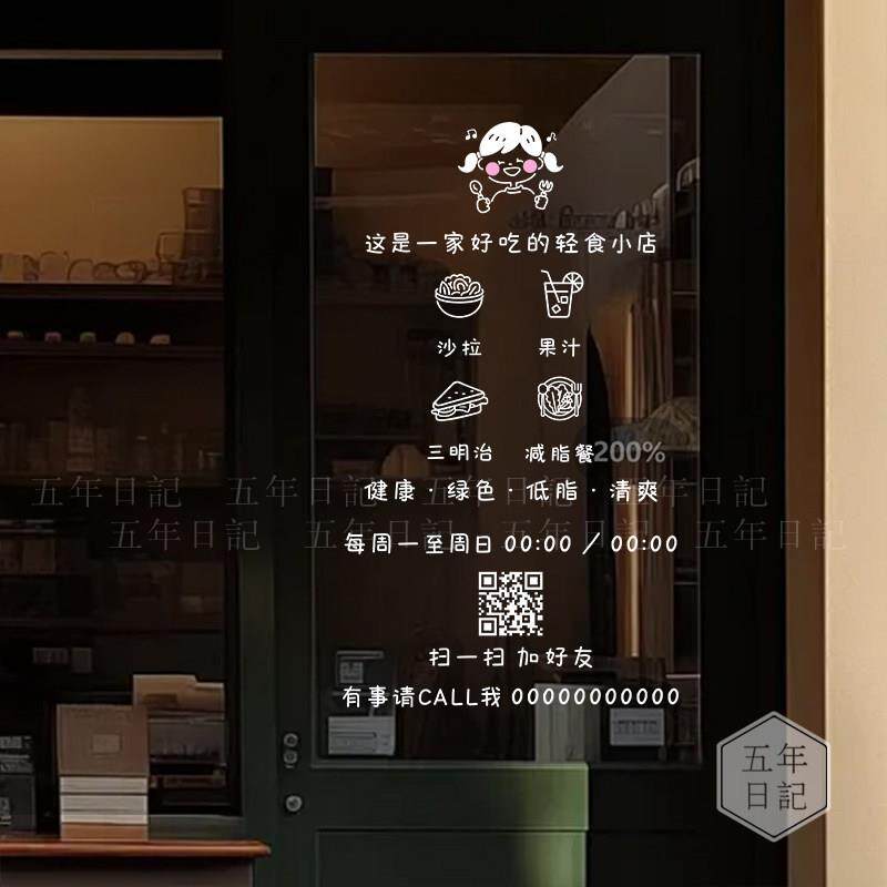 您的位置: 可修改时间二维码轻食简餐减肥脂果汁店铺橱窗玻璃门装饰防撞贴纸