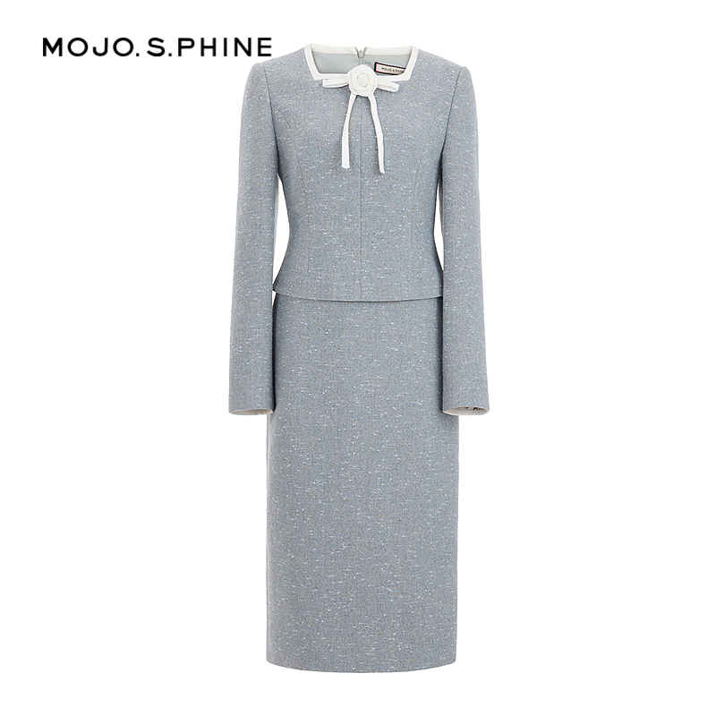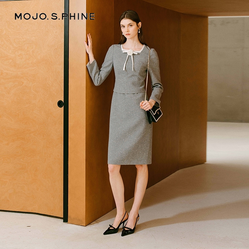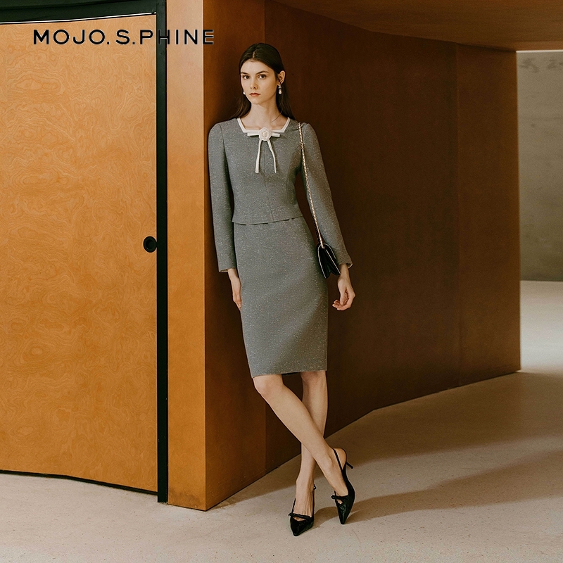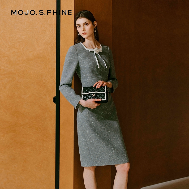 您的位置: MOJO莫佐2025新款格雷系名媛小香假两件连衣裙女秋冬修身智感灰色