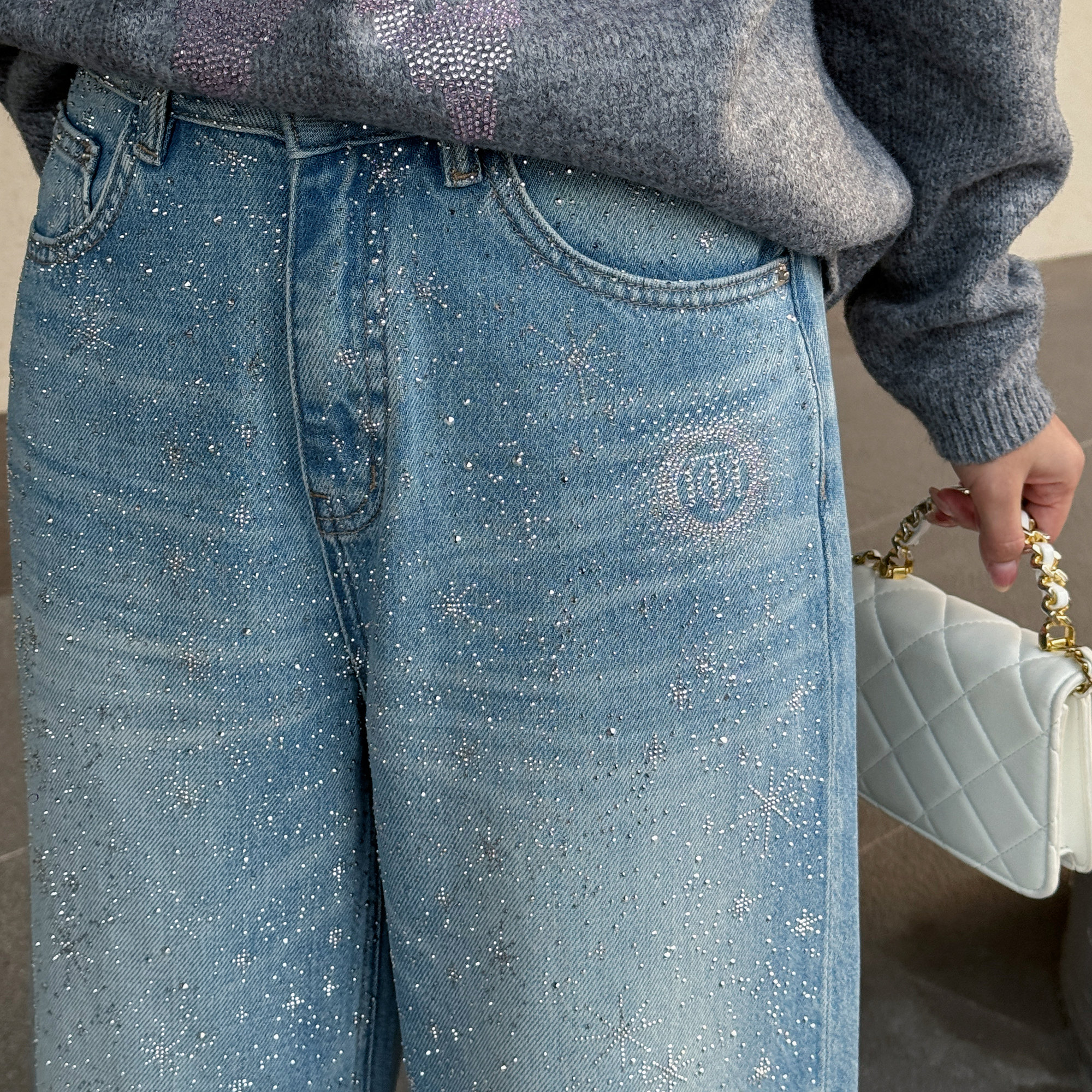 您的位置: TCH2026春季新款美式复古满天星烫钻直筒显瘦牛仔裤女T78A20E1008