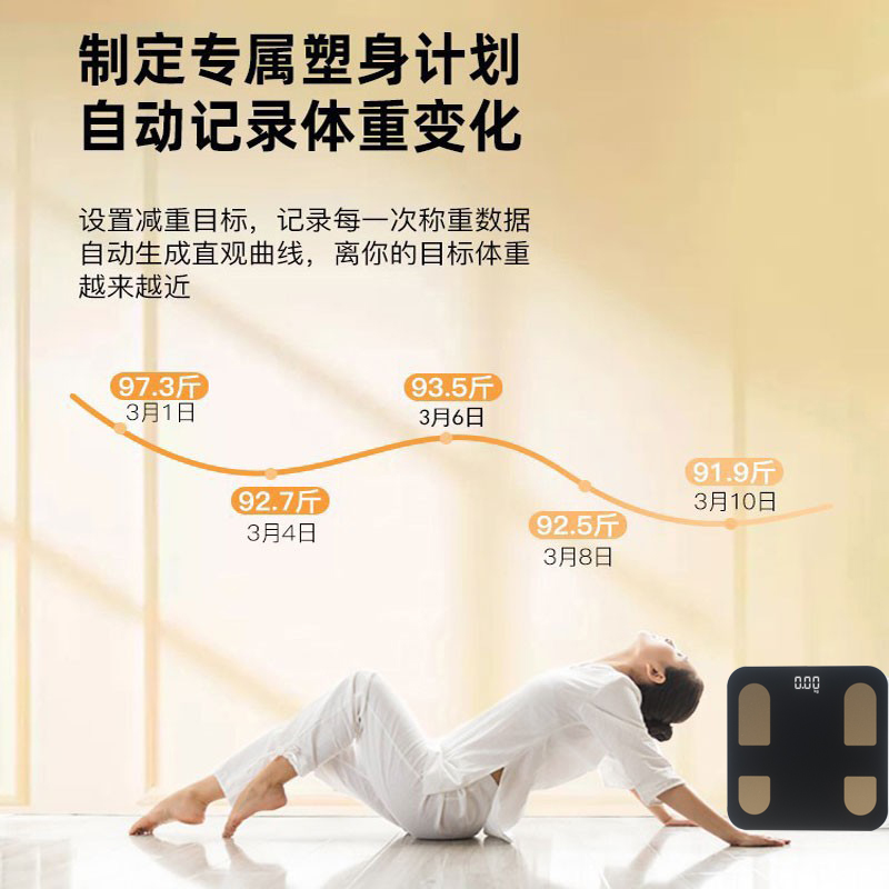 您的位置: 智能APP体脂秤人体秤专业高精准新款联动体重称小型家用已接入米家连接手机通用充电子秤瘦身宿舍女减肥专用
