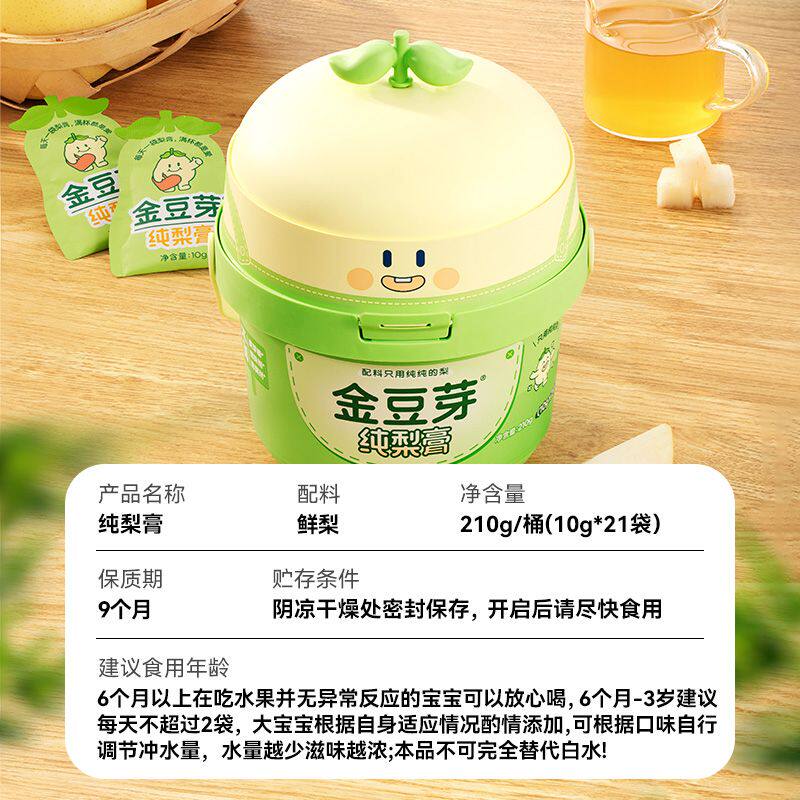 淘宝天猫金豆芽官方小梨桶210g儿童新包装纯梨膏无添加秋梨膏独立包装新货优惠券折扣价格–彩云间