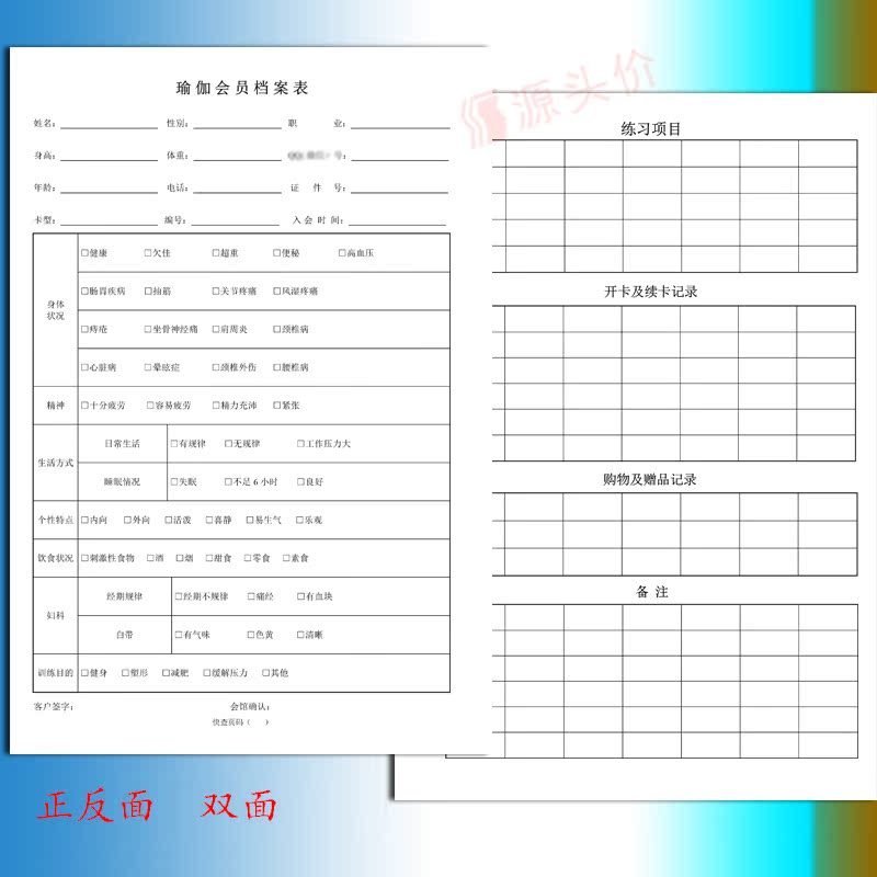 淘宝天猫瑜伽会员档案表健康会馆管理VIP私教上课信息资料健身减肥塑形本优惠券折扣价格–彩云间