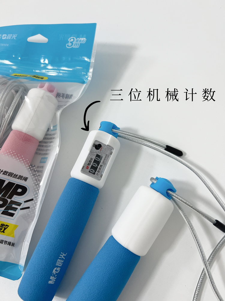 晨光中考跳绳AST97474可调长短泡棉防滑手柄计数钢丝绳小学生中学生成人体育用品初学者健身减肥燃脂单人绳子