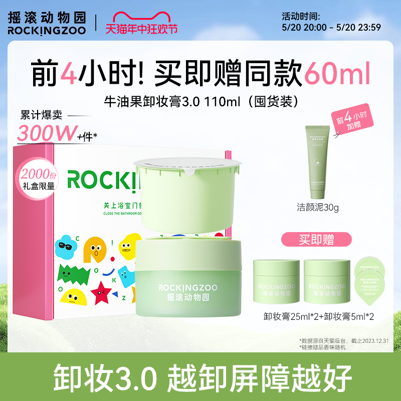 展轩同款】摇滚动物园牛油果卸妆膏(一正一替)女敏感肌,定金20元/送:卸妆膏25ml*2+洗面奶150g,遇水秒乳化,使用完清爽不油腻,卸妆0残留,卸妆同时还养护肌肤。