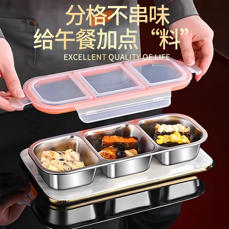 您的位置: 304不锈钢三格保鲜盒密封减肥减脂定量分装小饭S盒便携水果便当盒