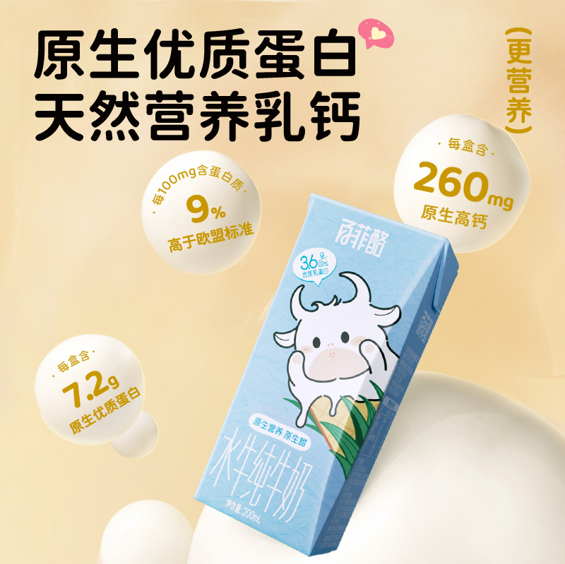 淘宝天猫【新老包装随机发货】百菲酪3.6g水牛纯牛奶200ml*10盒*2箱优惠券折扣价格–彩云间