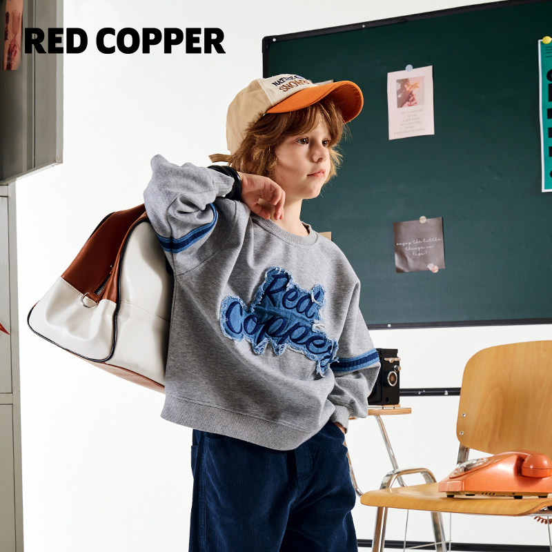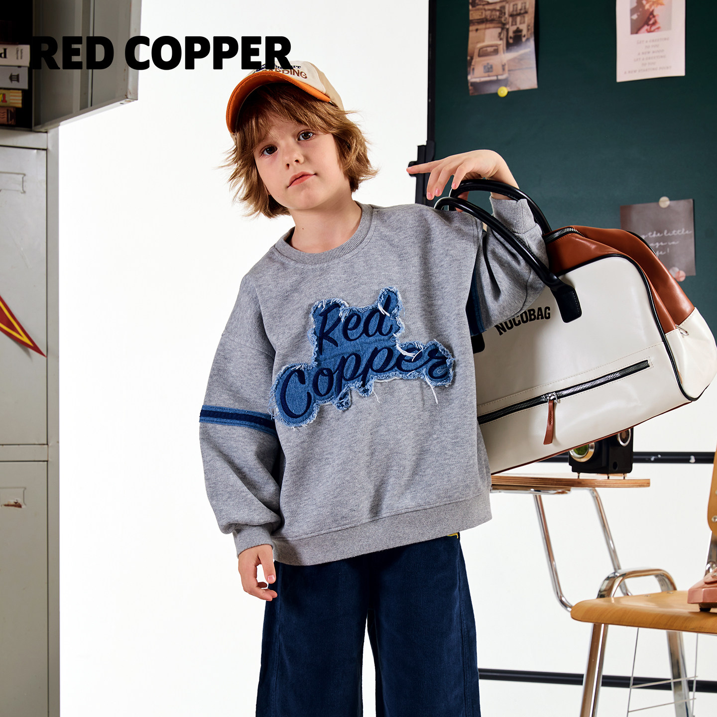 redcopper童装男童2025新款秋冬季上衣儿童美式贴布个性圆领卫衣