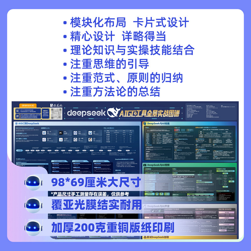 【出版社旗舰店】DeepSeek AIGC工具全景实战图谱 大尺寸知识海报挂图 深度机器学习写稿短视频创作chatgpt编程入门ai人工智能书籍