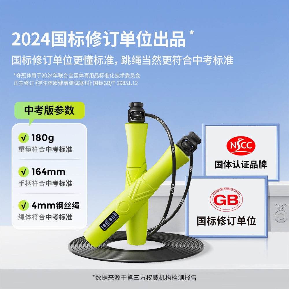 夺冠跳绳中考专用初中生小学生计数计时儿童减肥体育考试钢丝跳神