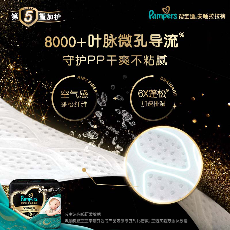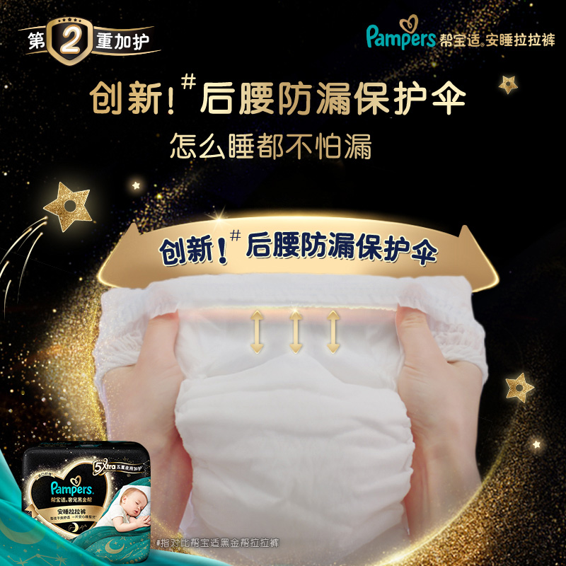 > 【专为夜用设计】帮宝适奢宠黑金帮夜用安睡拉拉裤L-XXXL宝宝尿裤