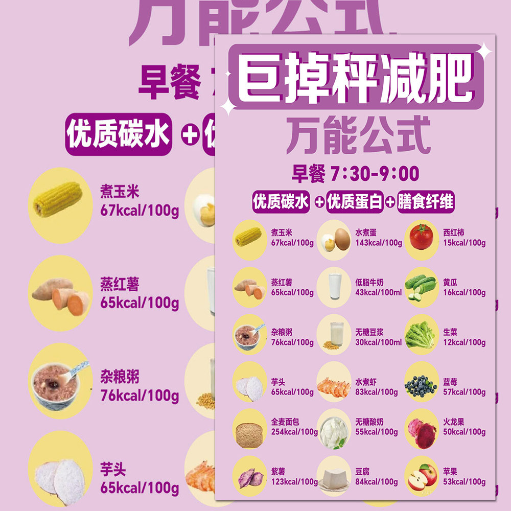 36张减肥万能公式贴纸快速掉秤小技巧三餐食谱健康减肥食谱自粘贴