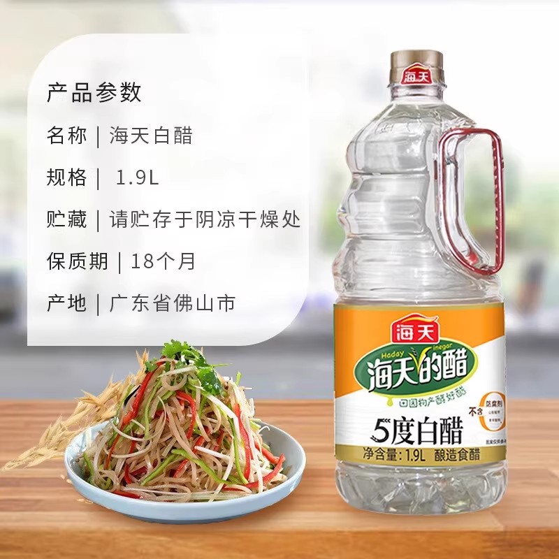 您的位置: 海天5度白醋1.9升食用白醋纯粮酿造醋家用食用大桶装泡菜