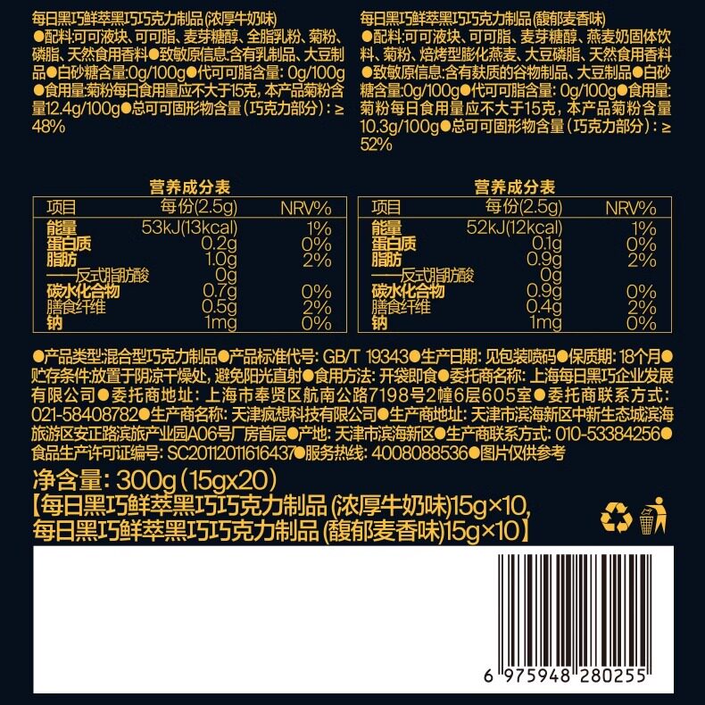 > 【下拉领优惠】每日黑巧鲜萃黑巧吨吨装巧克力300g小零食新年礼物