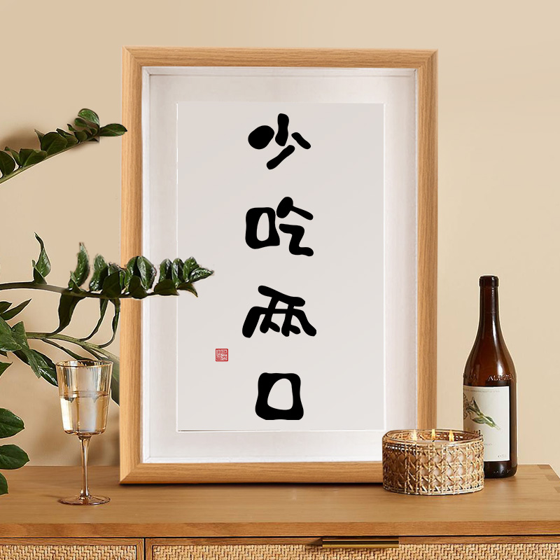 您的位置: 少吃两口节食减肥少食自律书法摆台餐厅桌面装饰作品摆台相框挂画