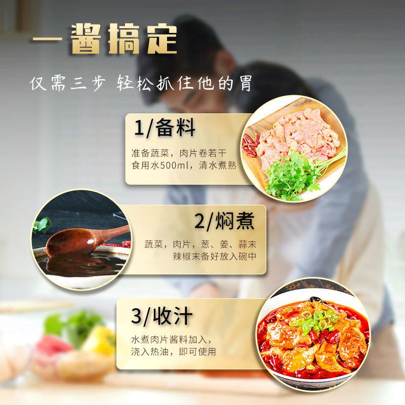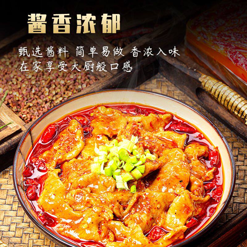 您的位置: 熘香煲水煮肉片调味料毛血旺鸡水煮鱼牛肉底料佐料配方料包80g/袋