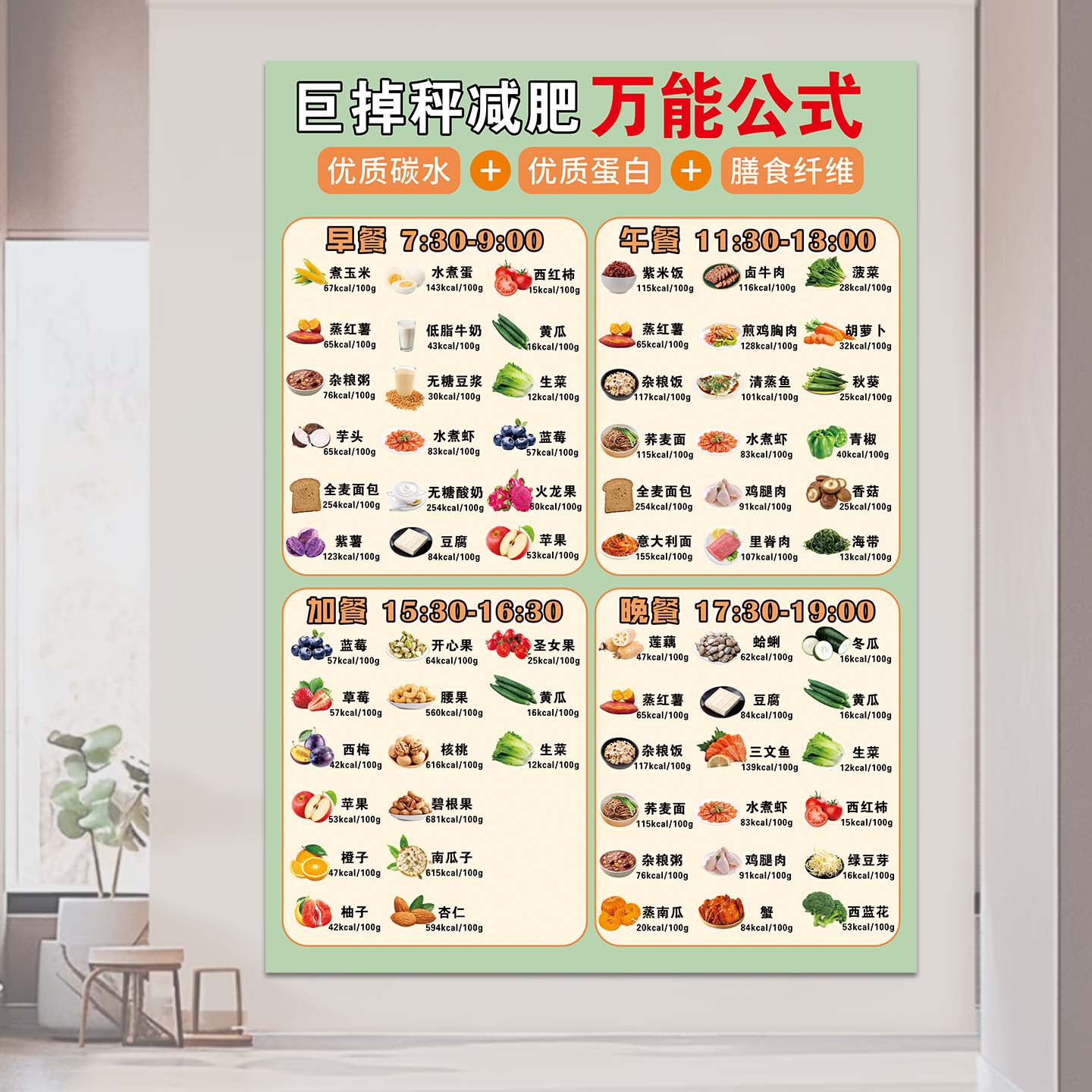 减肥食谱挂图科学健健康瘦身一日三餐自律打卡计划表墙贴纸海报画