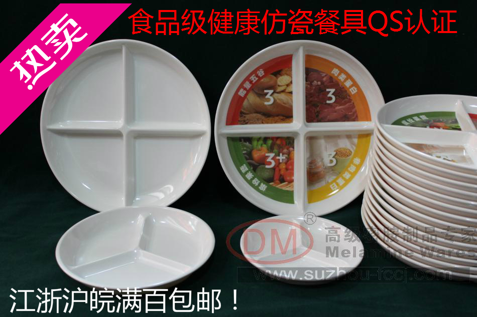 仿瓷密胺快餐盘分格餐盘分餐盘四格盘子拼盘人马君减肥脂健身包邮