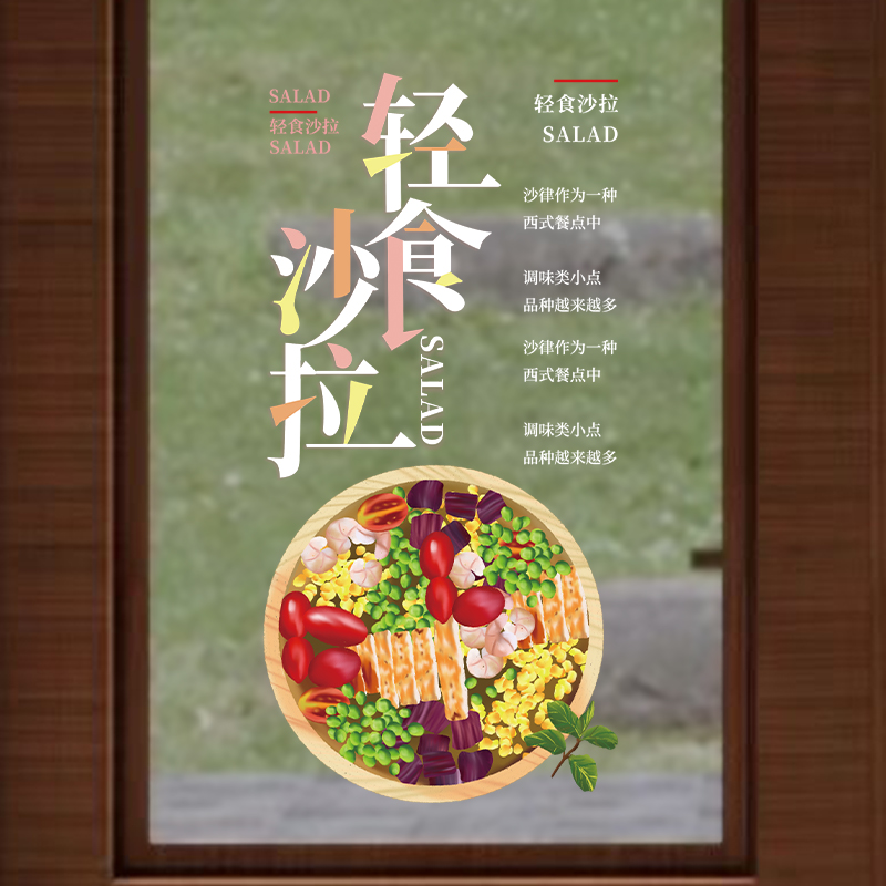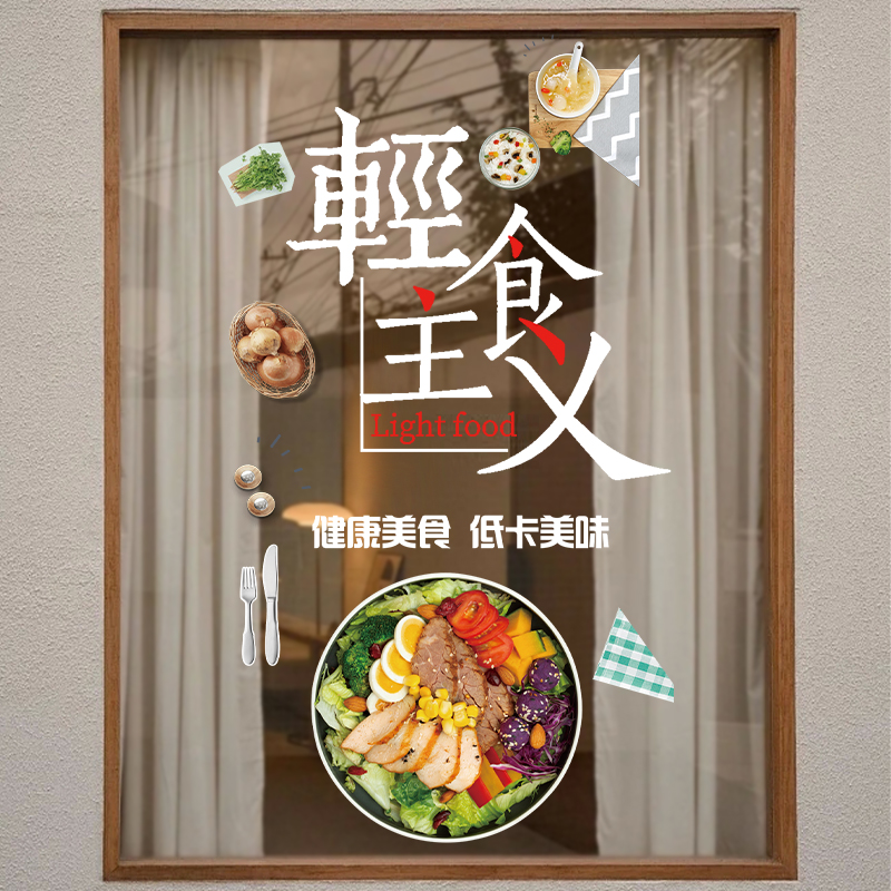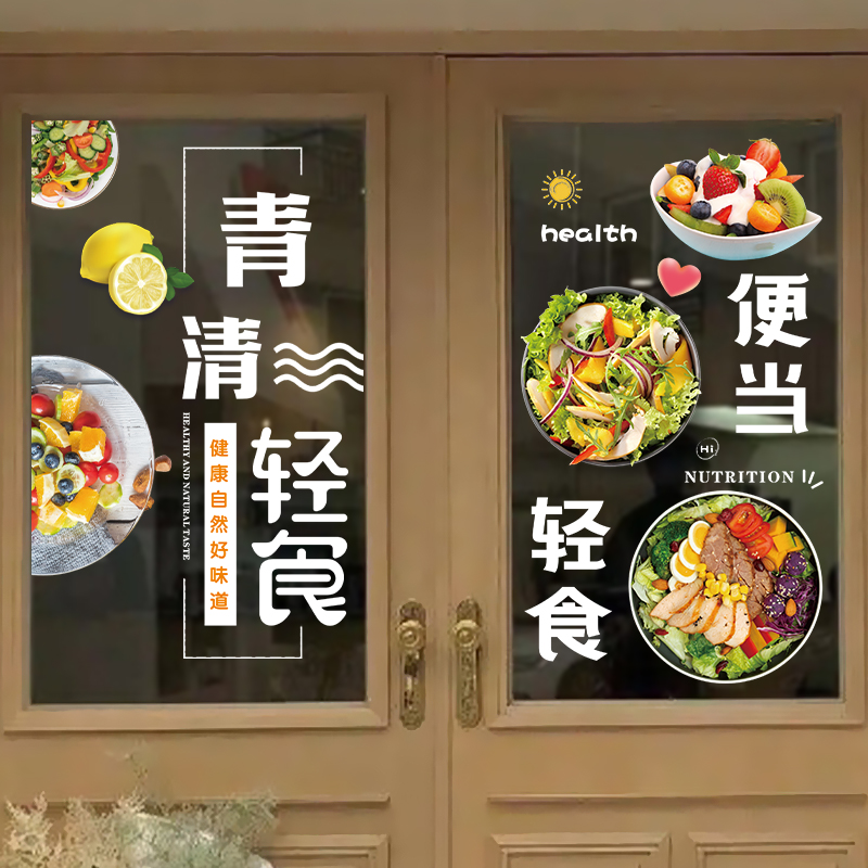 轻食主义减脂餐玻璃门贴网红沙拉素食营养减肥健康饮食广告装饰画