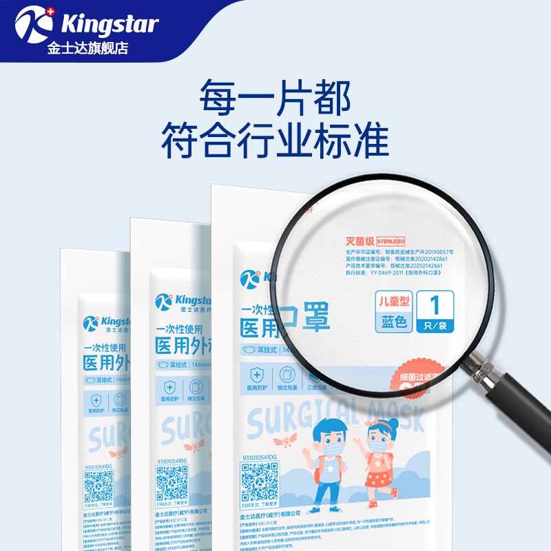 您的位置: 金士达医疗儿童医用外科口罩一次性使用医疗口罩成人灭菌级独立装